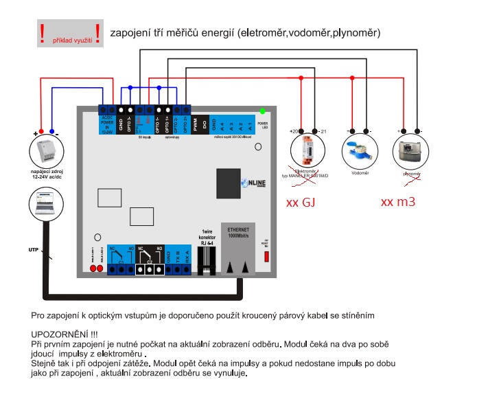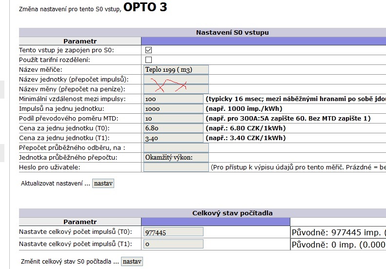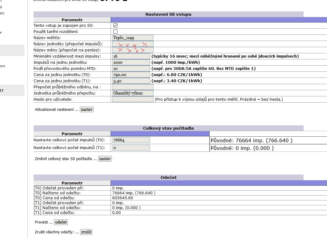 V paneláku máme výměníkovou stanici s dálkovou dodávkou tepla. Dodavatel tepla Iromez nám osadil ultrazvukový měřič tepla Siemens UH50-A60. V návodu jsem se dočetl, že kromě obsazené pozice MB pro dálkový odečet, je možná pozice CL pro impulsní modul WZU-P2. S Dodavatelem jsem se domluvil a montážní firma ten modul objednala /asi 600,-Kč/, zapojila, vyvedla dráty a zapečetila. Ještě jsem nastrkal zapouzdřené teploměry za izolace potrubí a při výměně vodoměru ve výměníku už jsem požadoval impulsní vodoměr. Měření mohlo začít.