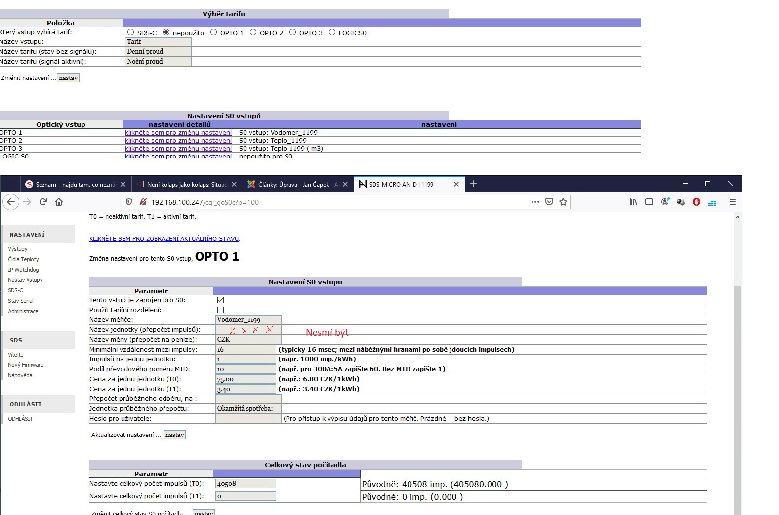 Názvy jednotek musí být všude prázdné. Protože při spuštění kontrolního odečtu "IP SDS/xml.xml" by v buňce s číslem se objevil i text. Při ládování do tabulky Mysql by se pak pole tabulky muselo nastavit na varchar a ne na double. Je fakt, že před upgradem SDS a serveru to nevadilo. Bohužel chodící skript se rázem stal nechodícím a já jsem strávil pár hodin pokusy než jsem na to přišel. Přitom taková blbost.